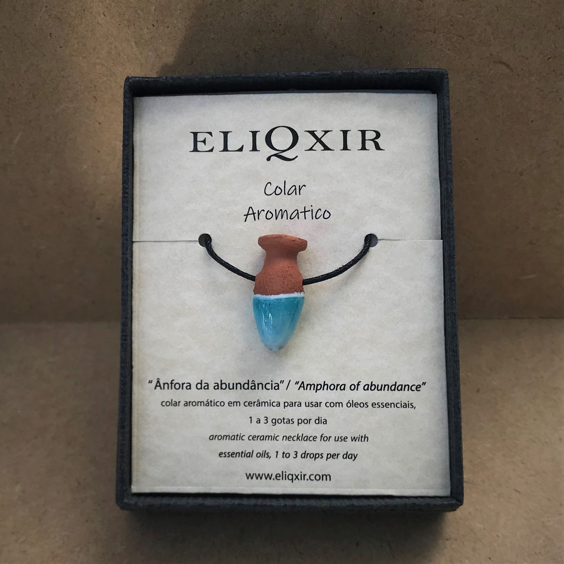 Colar Ânfora 15,00 € Desconto de %. Partilhar Barro / Clay Barro Vermelho Barro Branco Comprar Contactar SKU: ELQ-CLR-ANF Colar Difusor pessoal AromaterapiaCerâmicaLã de Ovelha A porosidade da cerâmica assim como a lã de ovelha são as matérias orgânicas de excelência escolhidas para fixar o óleo essencial. Aplicar 1 a 3 gotas de óleo essencial no orifício onde está a lã. * De momento só temos fio de algodão preto. O tamanho e forma pode variar um pouco. ... Personal Diffuser Necklace AromatherapyCeramicSheep wool The porosity of ceramics as well as sheep's wool are the organic materials of excellence chosen to fix the essential oil. Apply 1 to 3 drops of essential oil to the hole where the wool is. * At the moment we only have black cotton thread. The size and shape may vary slightly.