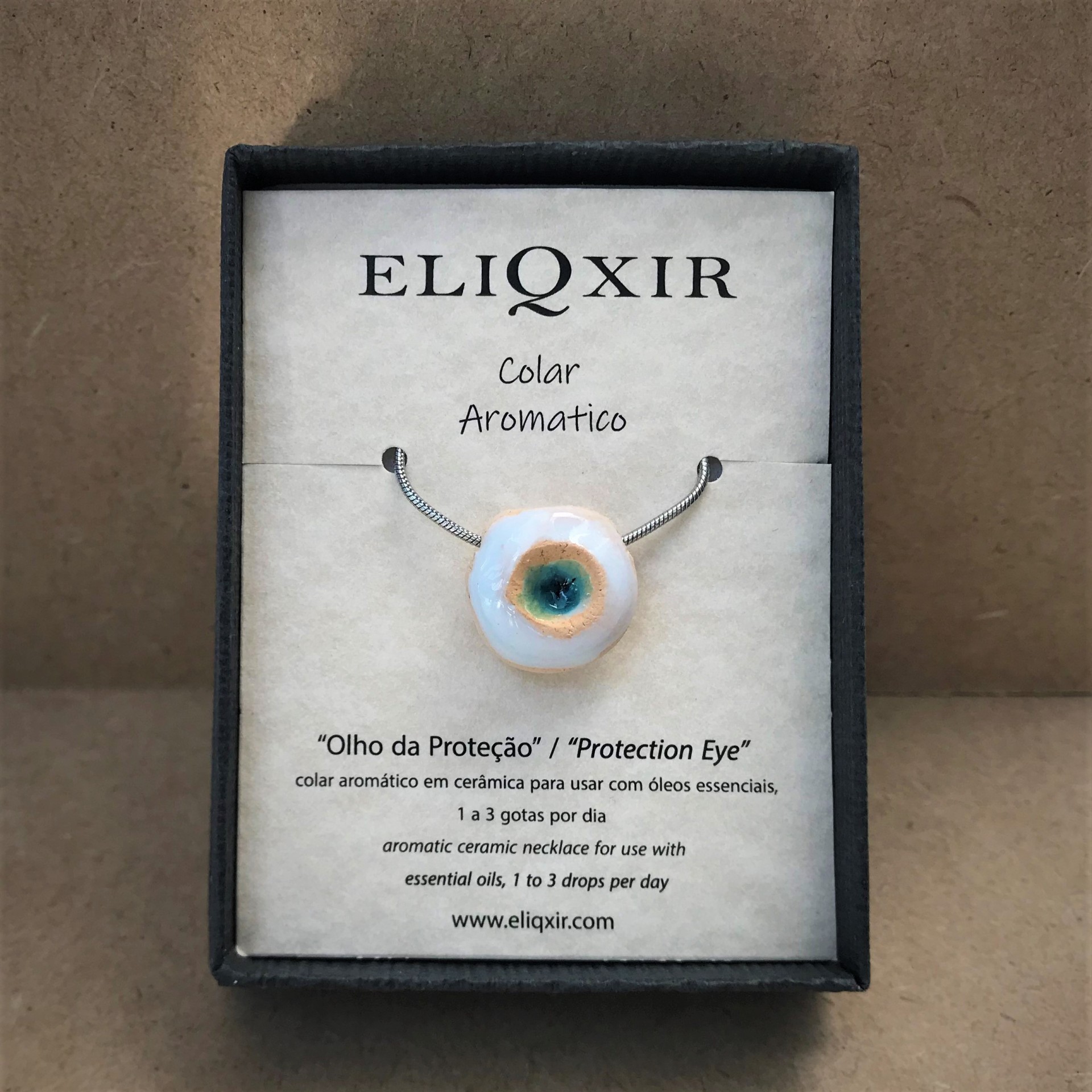 Colar Olho 15,00 € Desconto de %. Partilhar Côr Vidrado Vermelho Vidrado Azul Comprar Contactar Colar Difusor pessoal AromaterapiaCerâmicaLã de Ovelha A porosidade da cerâmica assim como a lã de ovelha são as matérias orgânicas de excelência escolhidas para fixar o óleo essencial. Aplicar 1 a 3 gotas de óleo essencial no orifício onde está a lã. * De momento só temos fio de algodão preto. O tamanho e forma pode variar um pouco. ... Personal Diffuser Necklace AromatherapyCeramicSheep wool The porosity of ceramics as well as sheep's wool are the organic materials of excellence chosen to fix the essential oil. Apply 1 to 3 drops of essential oil to the hole where the wool is. * At the moment we only have black cotton thread. The size and shape may vary slightly.